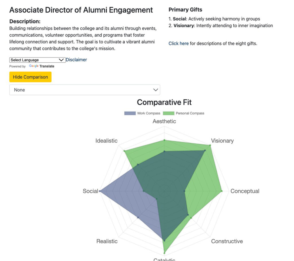 This assessment enables users to evaluate the gifts required for any type of work—or for their current role—to determine how well their natural abilities align with the demands of that work.